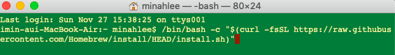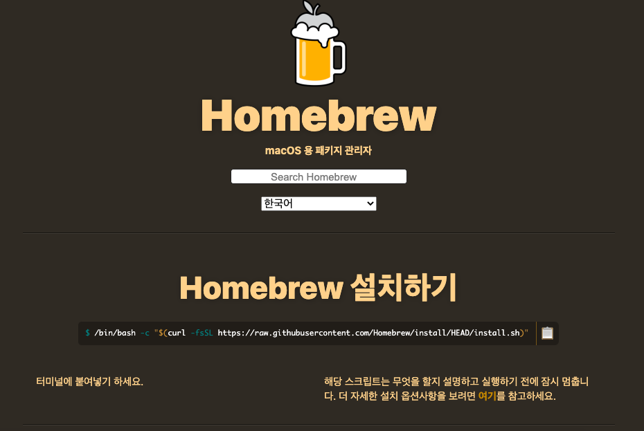 2. homebrew가 없다면 설치부터하기 (아래사이트에 가서 소스를 터미널에 붙여넣기한다.)
