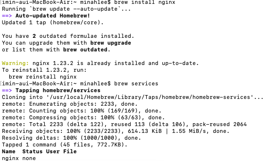 3. brew가 있으신 분들은 아래 명령어로 nginx가 설치되어 있는지 확인해본다.