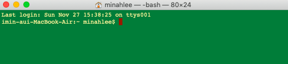 1. 터미널을 연다 (command + 스페이스 후 터미널이라고 검색)